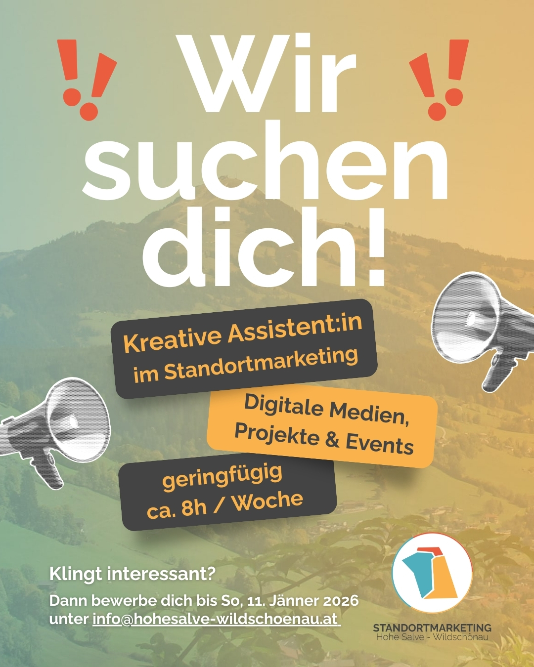 Dann freuen wir uns auf deine Bewerbung inkl. Lebenslauf bis Sonntag, 11. Jänner 2026 an Koordinatorin Michaela Hausberger: